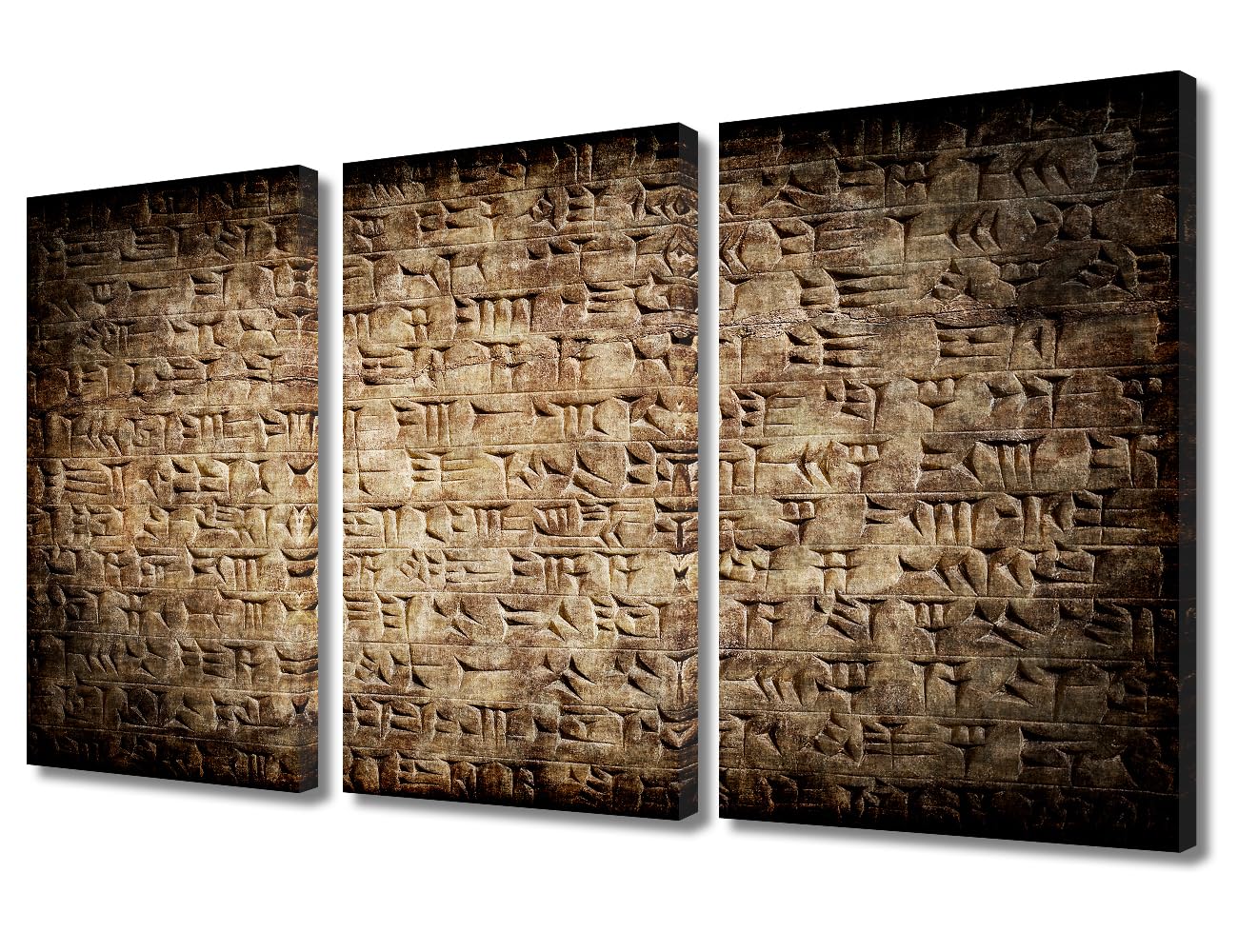 Amazon.com: Arte de pared cuneiforme antiguo con inscripción asiria o sumeria, decoración del hogar, cultura antigua, decoración de pared para sala de estar, dormitorio, 3 piezas, obras de arte enmarcadas, listas para