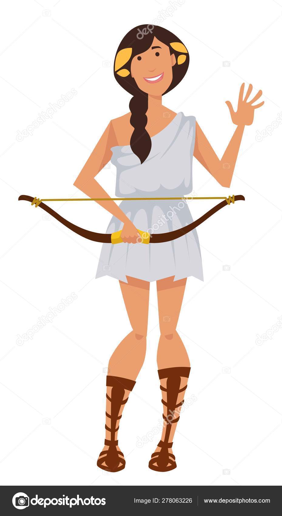 Artemis O Diana Diosa De La Cacería De Dibujos Animados Planos Ilustración De Vectores Aislados. Ilustración del Vector - Ilustración de leyenda, caza: 226829145