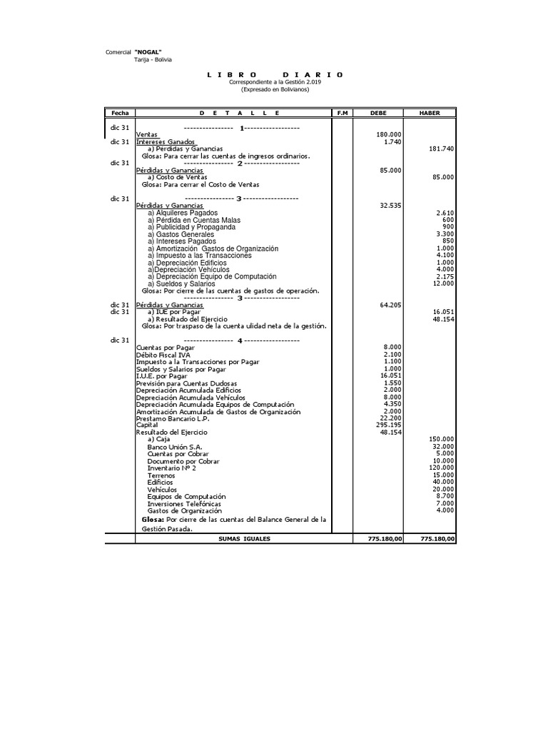 Asientos de cierre contable excel - excelcontablex.com