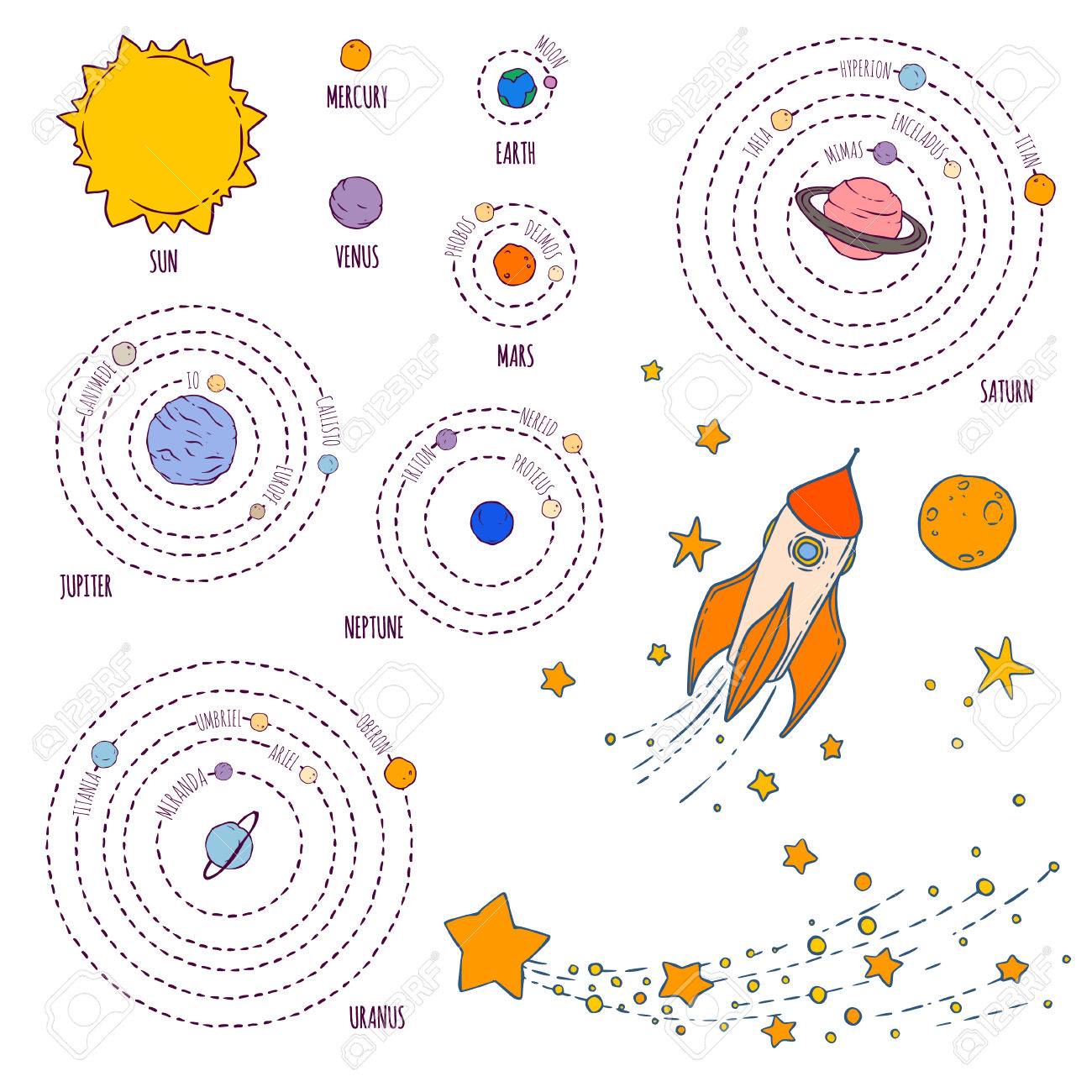 Dé Los Planetas Exhaustos De La Sistema Solar Con Los Asteroides Del Sol Y Del Espacio, Cometas, Estrellas Ejemplo Del Vector En Ilustración del Vector - Ilustración de mano, estrella: 81888879