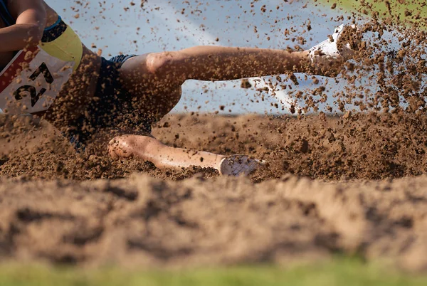 Aterrizaje Atleta En Arenero Después De Realizar Una Salto De Longitud Fotos, retratos, imágenes y fotografía de archivo libres de derecho. Image 57074672