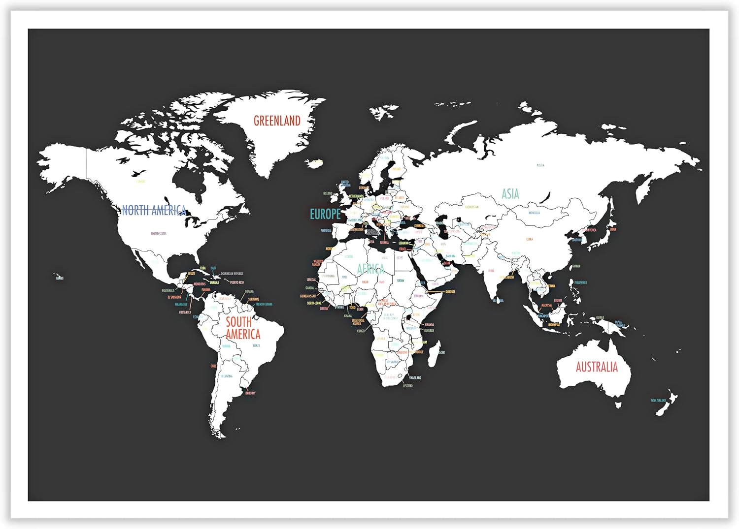 Hermoso Póster de Mapa Mundial Sin Marco - Blanco y Chile | Ubuy
