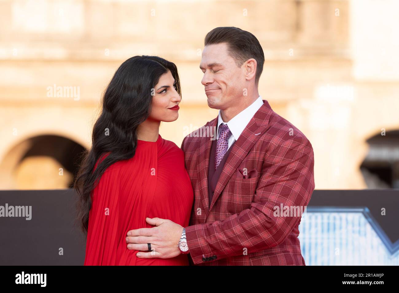 Roma, Italia. 12th de mayo de 2023. El luchador y actor ESTADOUNIDENSE John Cena y su esposa canadiense nacida en Irán, Shay Shariatzadeh, llegan para el estreno de la película ''Fast X'',