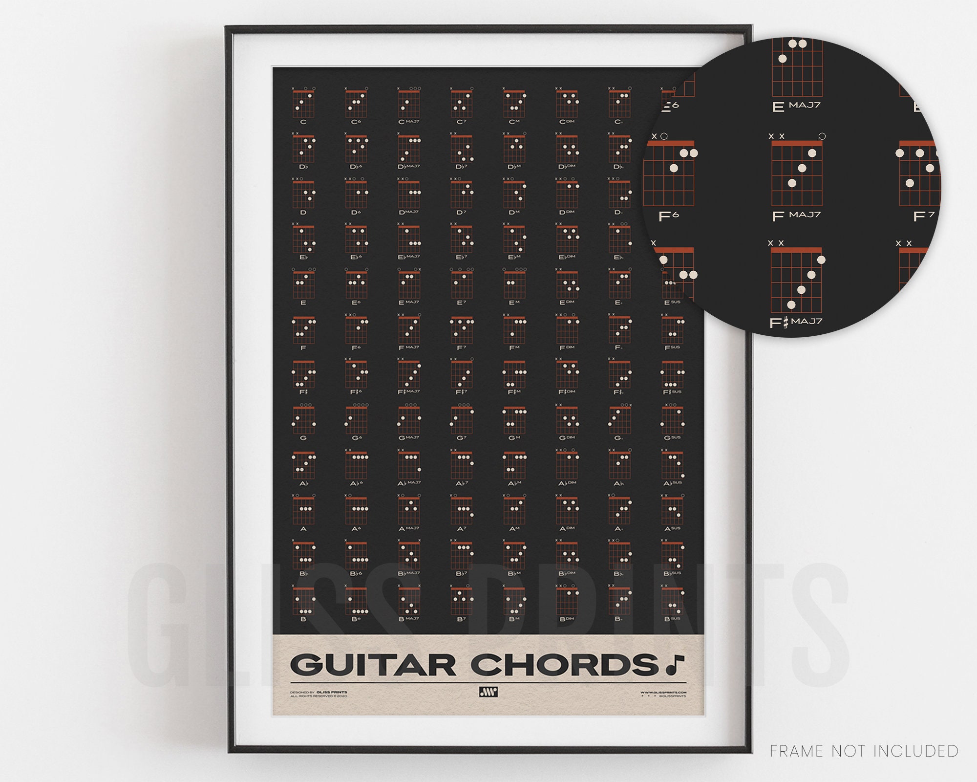 Cartel de la tabla de acordes de guitarra / Regalo para guitarrista / Póster de educación musical, negro - Etsy España