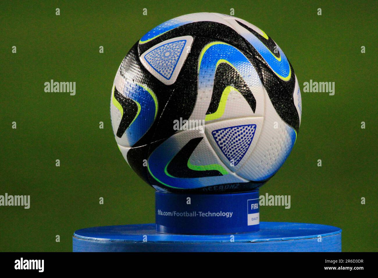La Plata, Argentina. 08th de junio de 2023. 8 de junio de 2023, La Plata, Argentina: Balón oficial de la Copa Mundial Sub-20 de la FIFA Argentina 2023, se ve momentos antes