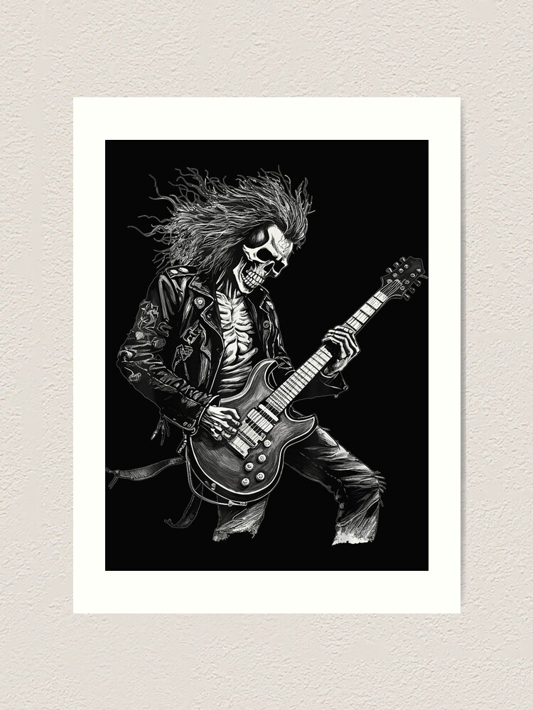 Lámina artística for Sale con la obra «Esqueleto Guitarrista Banda de rock and roll Rock On» de DarellSLent | Redbubble