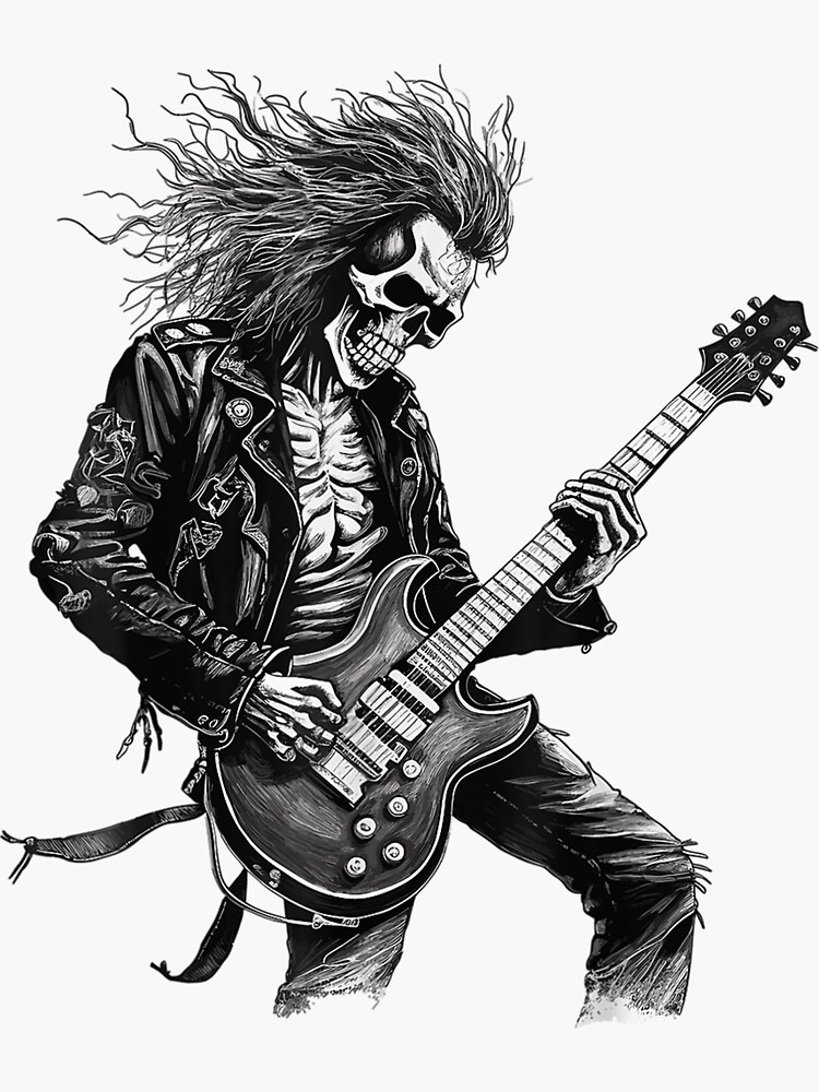 Pegatina for Sale con la obra «Esqueleto Guitarrista Banda de rock and roll Rock On» de DarellSLent | Redbubble