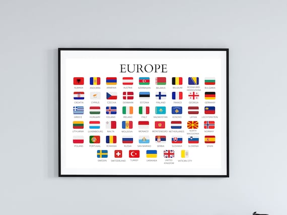 Países europeos, países de Europa, banderas y nombres, gráfico de aprendizaje, educativo, póster imprimible, Europa, impresión PNG, países, aprendizaje - Etsy México