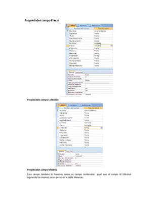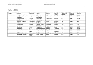 Especificaciones de tablas para una base de datos bibliotecaria | PDF | Biblioteca (informática) | Bases de datos