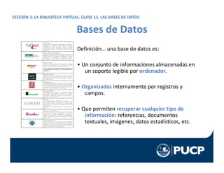 SECCION 3 BIBLIOTECA VIRTUAL CLASE 11 LAS BASES DE DATOS | PPT