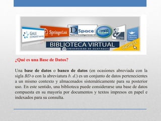 Uso de las Bases de Datos Biblioteca Virtual 2016 | PPT