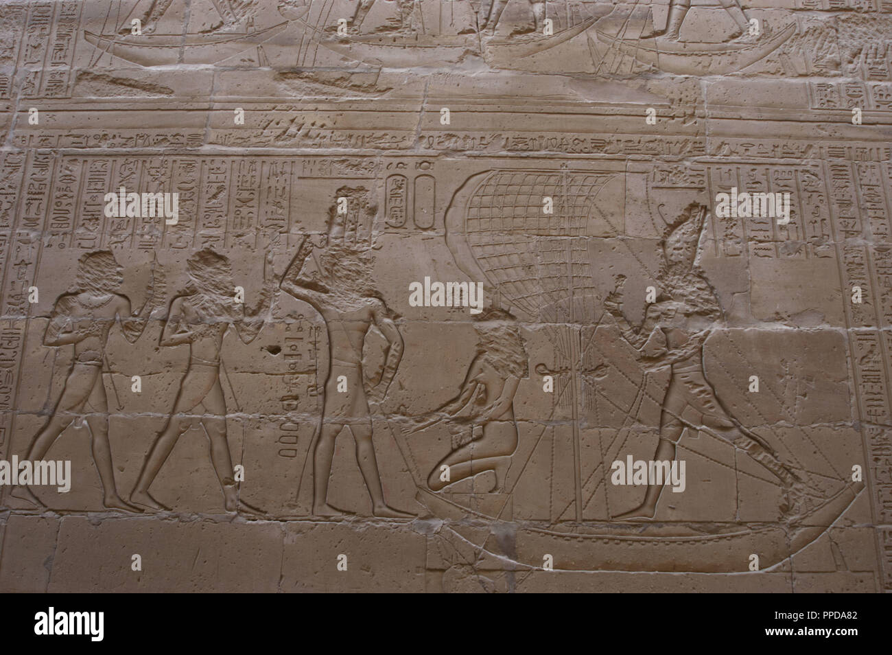 Batalla de Horus contra Seth diosa Isis a Helm, Graeco Roamn, el templo de Edfu, 1C BC Fotografía de stock - Alamy