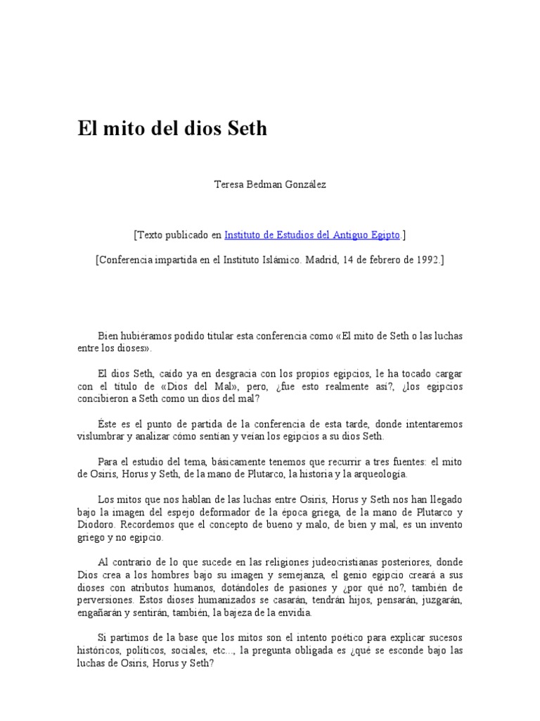 Bedman Teresa - El Mito Del Dios Seth | PDF