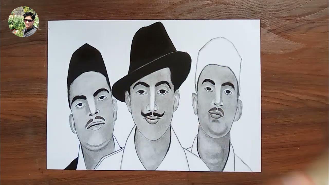How to draw Bhagat Singh Sukhdev and Rajguru in one picture step by step | Freedom Fighters | - YouTube