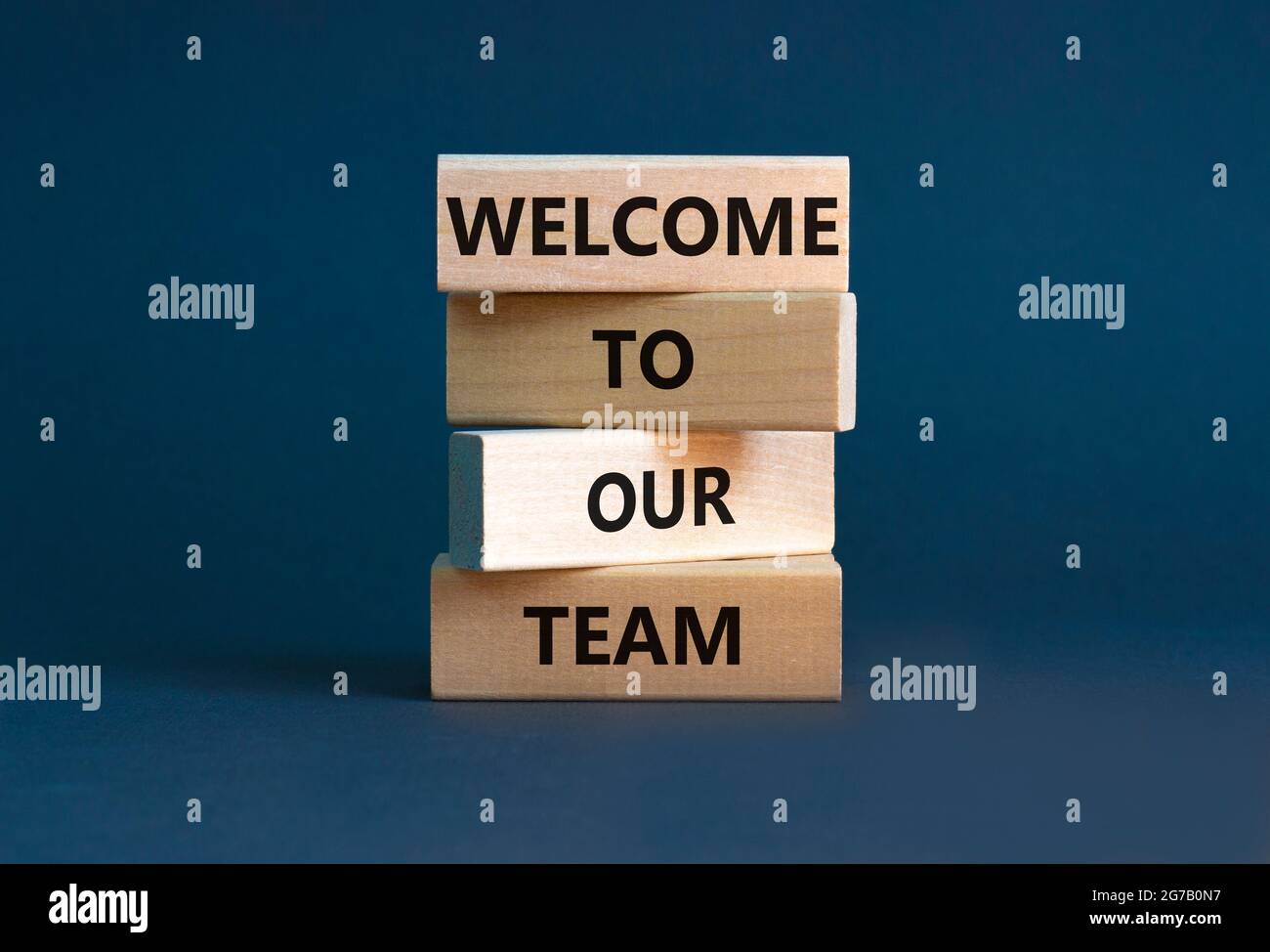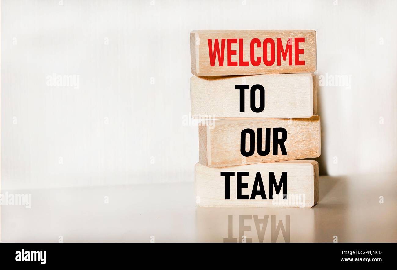 Bienvenido al símbolo de nuestro equipo. Concepto Palabras Bienvenido a nuestro equipo en bloques de madera. Hermoso fondo. Copiar espacio Fotografía de stock - Alamy