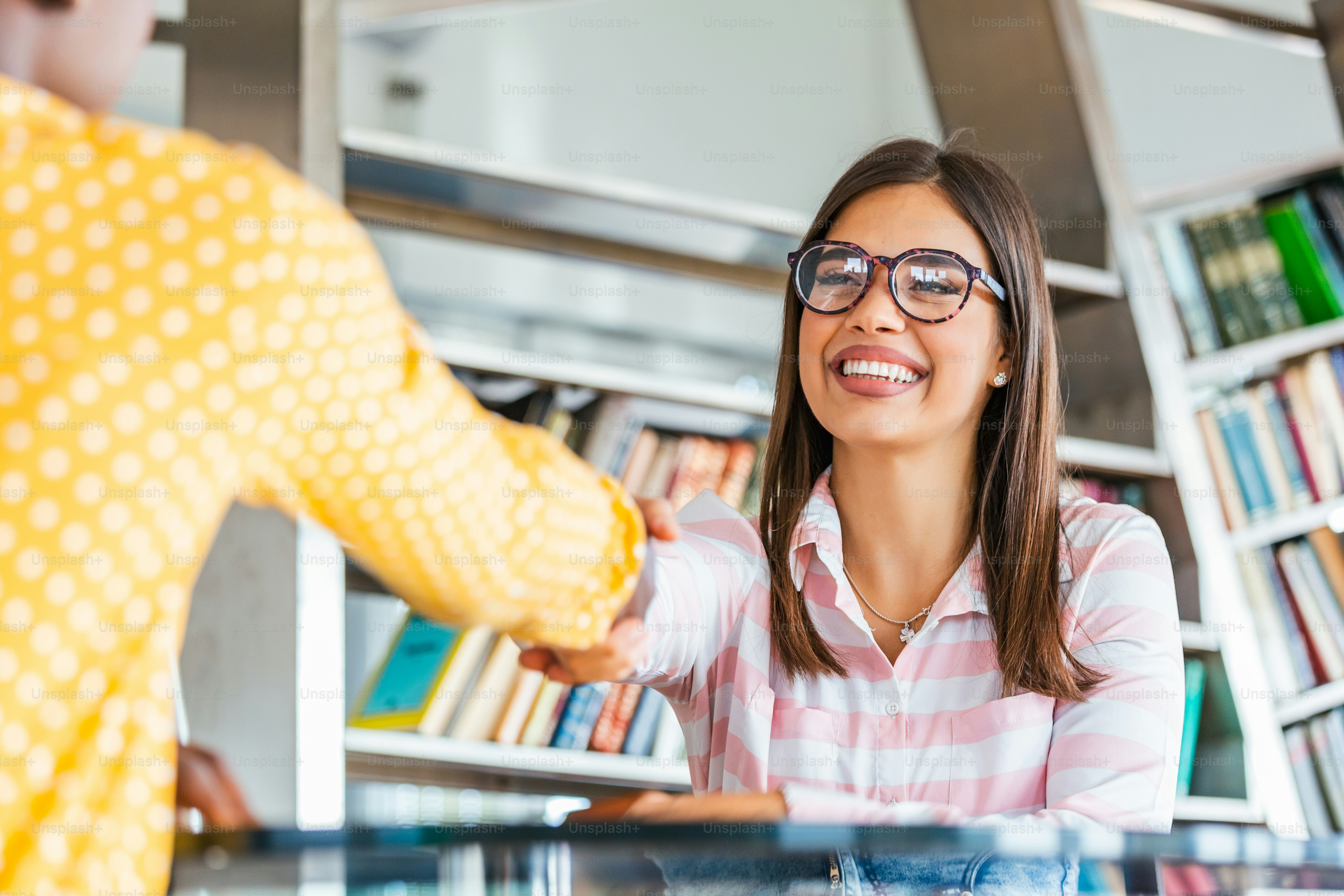 Foto ¡Bienvenido a nuestro equipo! Dos alegres colegas dándose la mano y sonriendo mientras tienen una reunión en la moderna oficina. Trabajo en Equipo – Traje Imagen en Unsplash