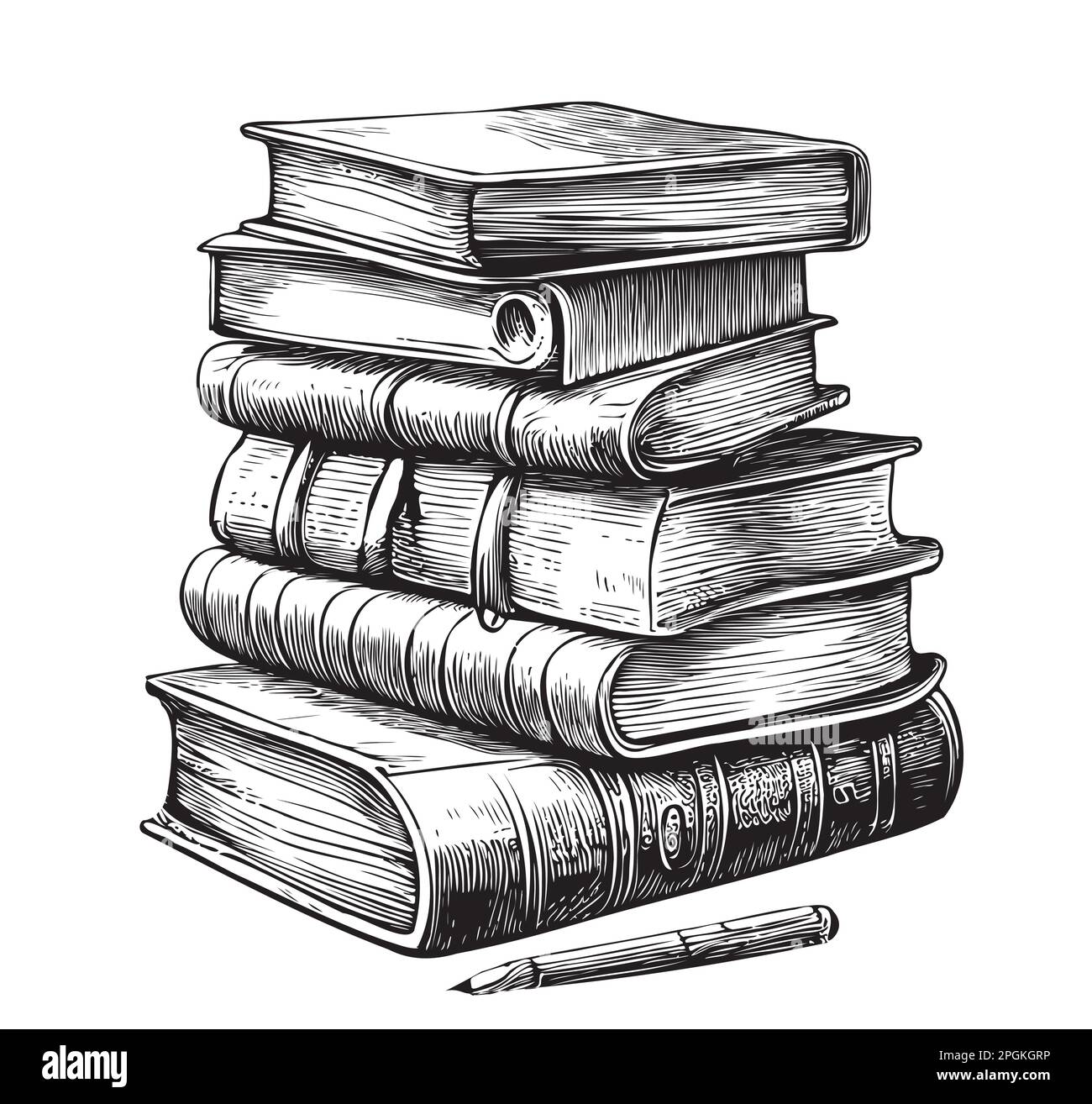 Pila de libros antiguos dibujado a mano ilustración de boceto Imagen Vector de stock - Alamy