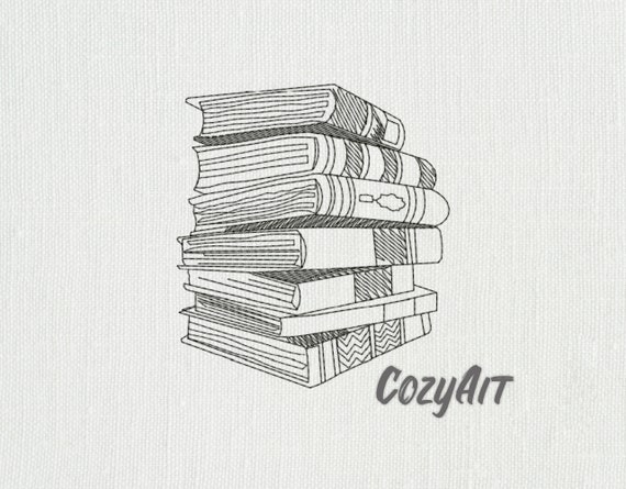 Pila de libros boceto diseño de bordado de la máquina - Etsy España