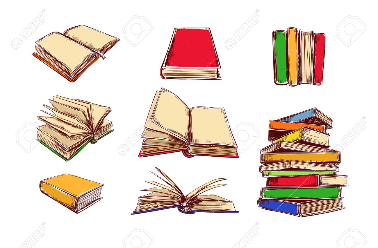 Bocetos De La Pila De Libros Cerrados Abiertos Ilustración del Vector - Ilustración de conocimiento, escuela: 237818518