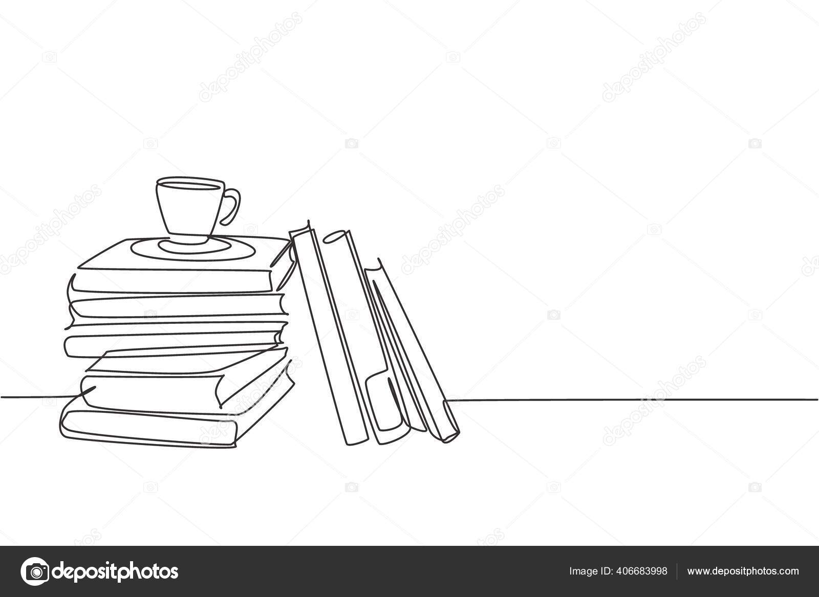 Pila de libros con taza de té, libro abierto, dibujo lineal. Ilustración de objeto vectorial, diseño de boceto dibujado a mano minimalista. concepto de estudio y conocimiento 2296608 Vector en Vecteezy
