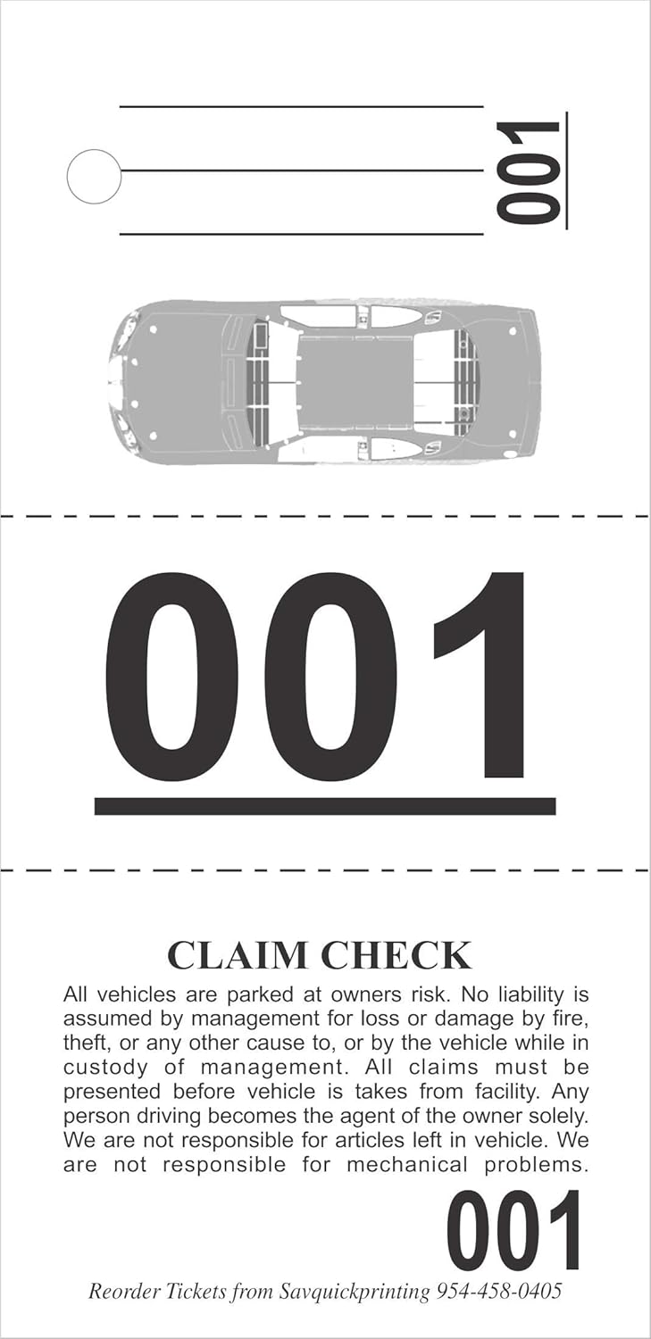 Amazon.com: Boletos de estacionamiento de valet de 3 partes (1000 boletos) en cartulina de 110 libras con diagrama de automóvil.. : Productos de Oficina