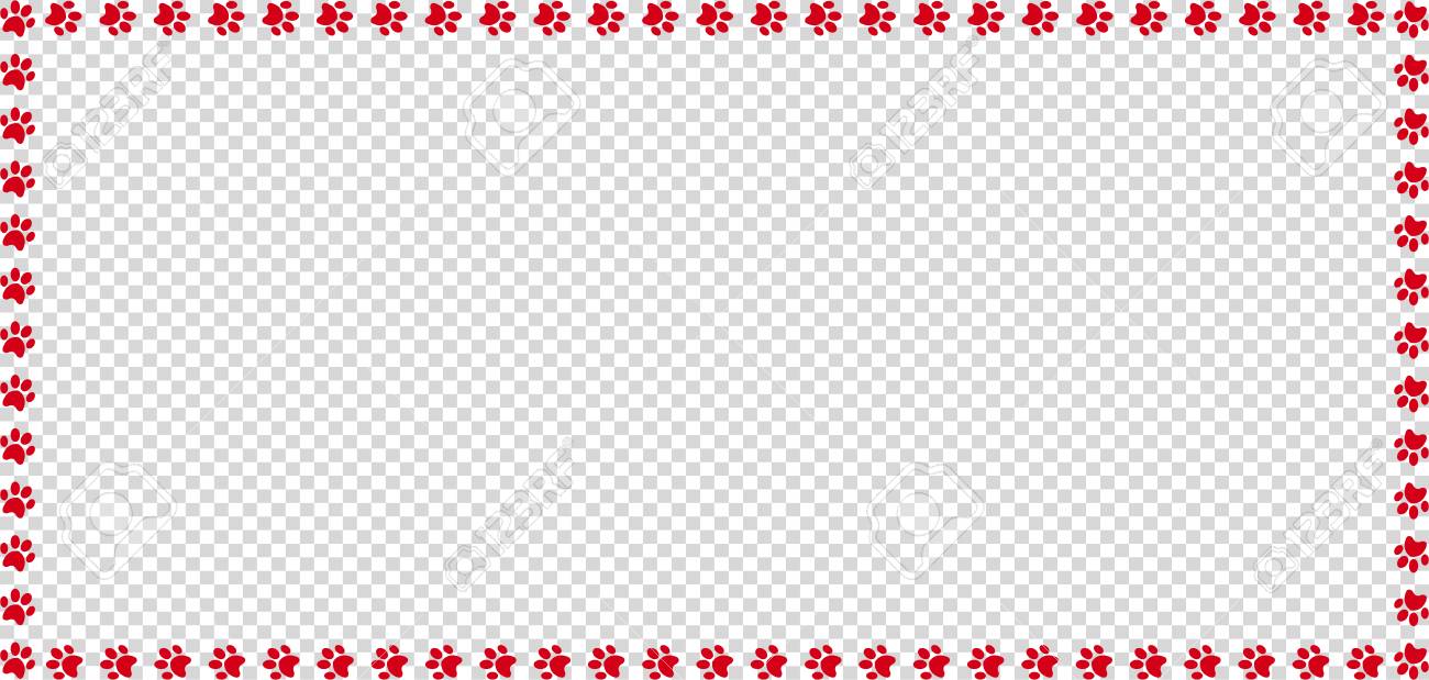 Marco Rectangular Hecho De Huellas De Animales De Color Rojo Sobre Fondo Transparente. Ilustración Vectorial, Plantilla, Borde, Marco, Marco De Fotos, Póster, Pancarta, Gatos O Perros. Ilustraciones svg, vectoriales, clip art vectorizado