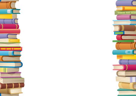 Pilas De Libros Que Forman 2 Bordes Laterales Para Enmarcar Un Espacio De Copia Vacío Para Su Texto. Las Pilas Tienen Un Patrón De Bucle Continuo Que Puede Subir Y Bajar. Ilustraciones