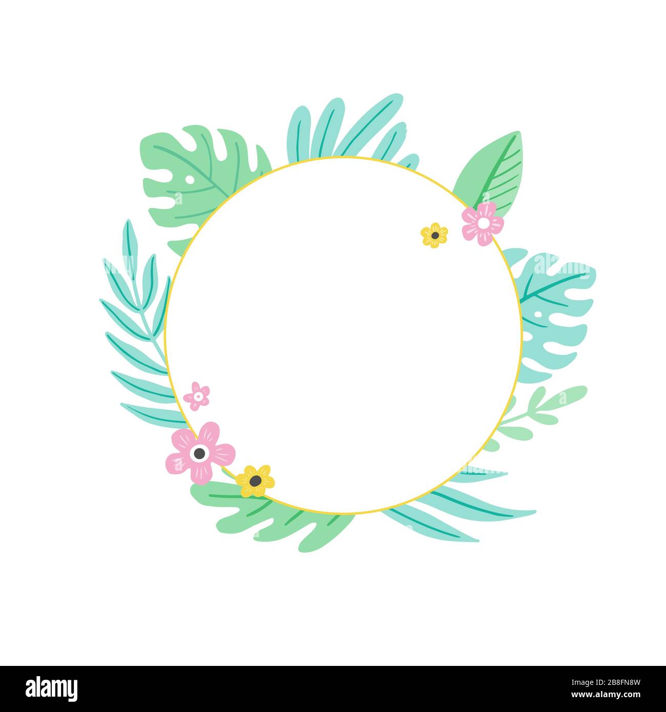 Marco tropical de hojas de verano para borde de texto, tarjeta de felicitación, diseño de póster. Decoración floral exótica de estilo hawaiano. Ilusión vectorial de estilo moderno Imagen Vector de stock -