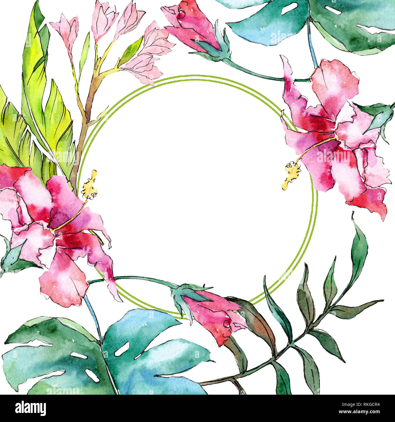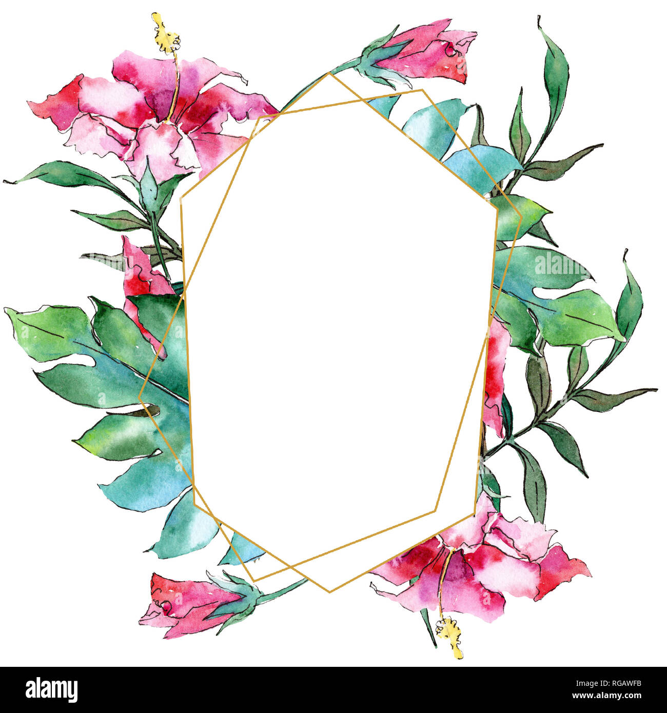 Rosa flor hawaiana tropical exótica. Ilustración de fondo de acuarela. Ornamento de borde de marco cuadrado Fotografía de stock - Alamy