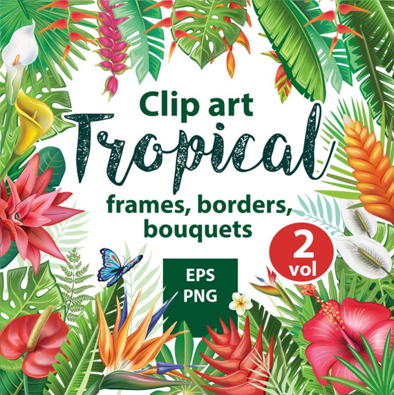 Clip art de bordes de marcos tropicales, Plantas y flores tropicales, Arreglo de flores, Clip art tropical, Flor tropical png - Etsy México