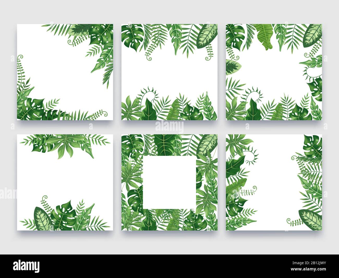 Marco de hojas exóticas. Borde de hoja tropical, naturaleza marcos de verano y hojas de palma de lujo bordes vector diseño fondo conjunto Imagen Vector de stock - Alamy