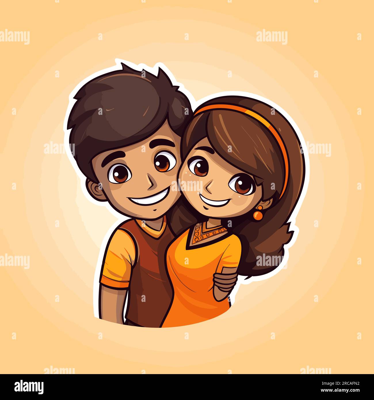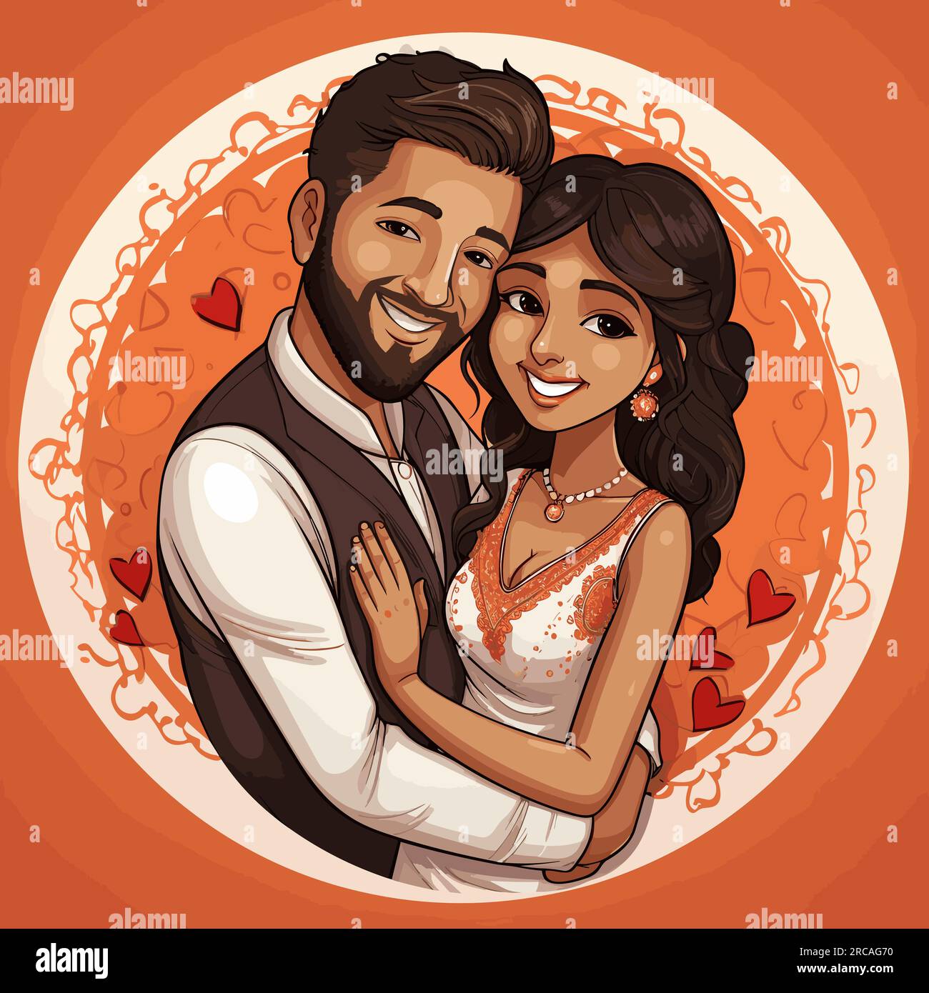 Pareja india. Pareja india dibujado a mano ilustración cómica. Vector doodle estilo ilustración de dibujos animados Imagen Vector de stock - Alamy