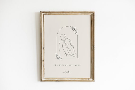 Cartel de matrimonio imprimible de boda cristiana Dos se convierten en una carne Pareja casada cristiana Bosquejo Novia Novio Cartel - Etsy España