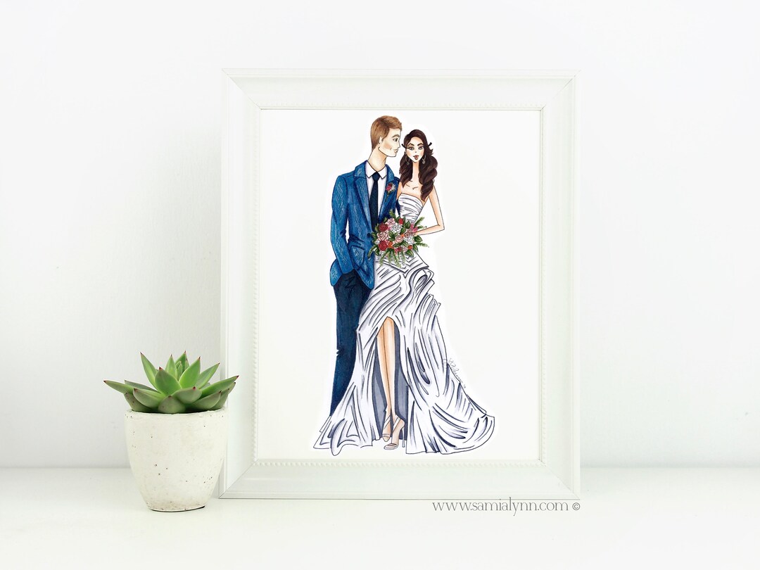 Ilustración de boda personalizada Retrato de pareja Novia y novio Novia y florista Regalo de boda Boceto de vestido de novia - Etsy España