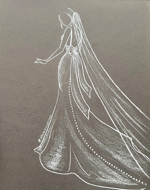 Ilustración de vestido de boda personalizado Dibujo de vestido Bosquejo de vestido de novia Retrato de novia Regalo de boda Regalo de novia - Etsy España