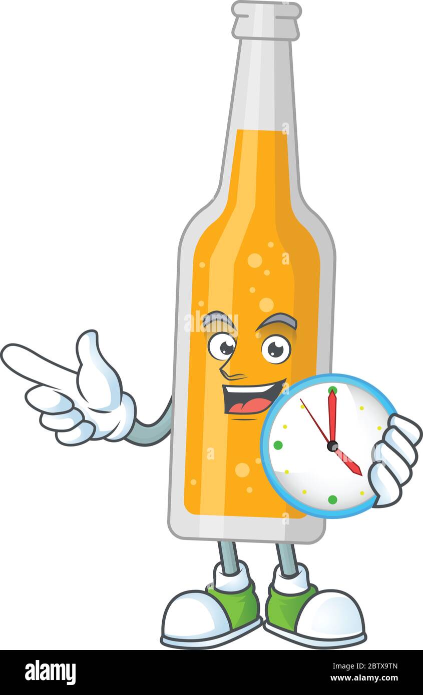 Dibujo de dibujos animados concepto de botella de cerveza con un reloj circular Imagen Vector de stock - Alamy