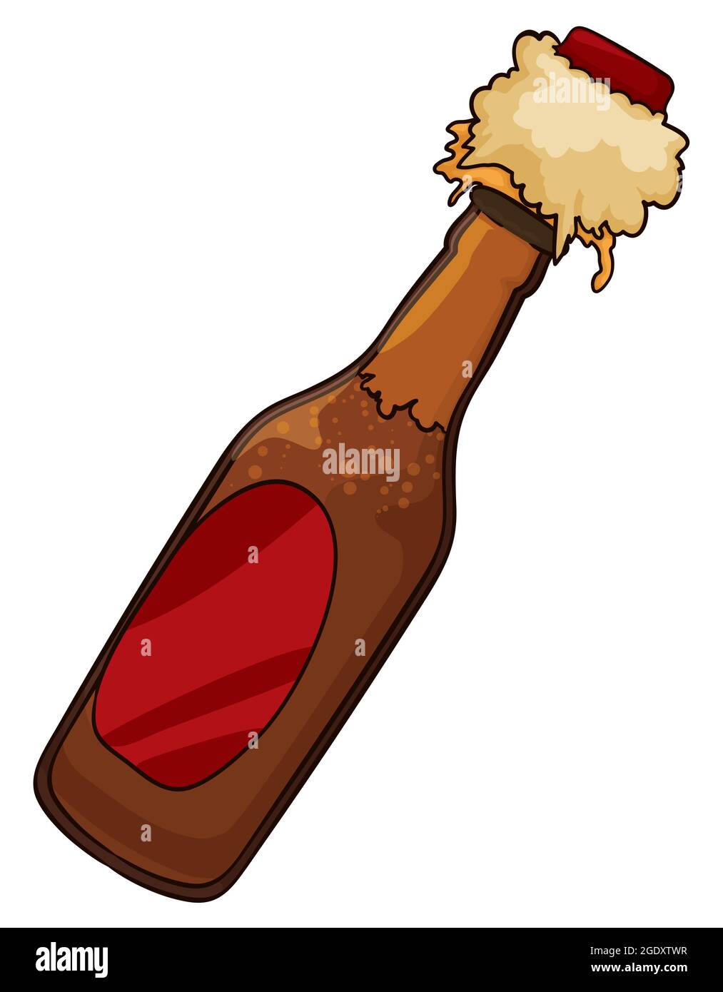Botella de cerveza con abundante espuma y salpicaduras de líquido, en estilo de dibujos animados y contornos Imagen Vector de stock - Alamy