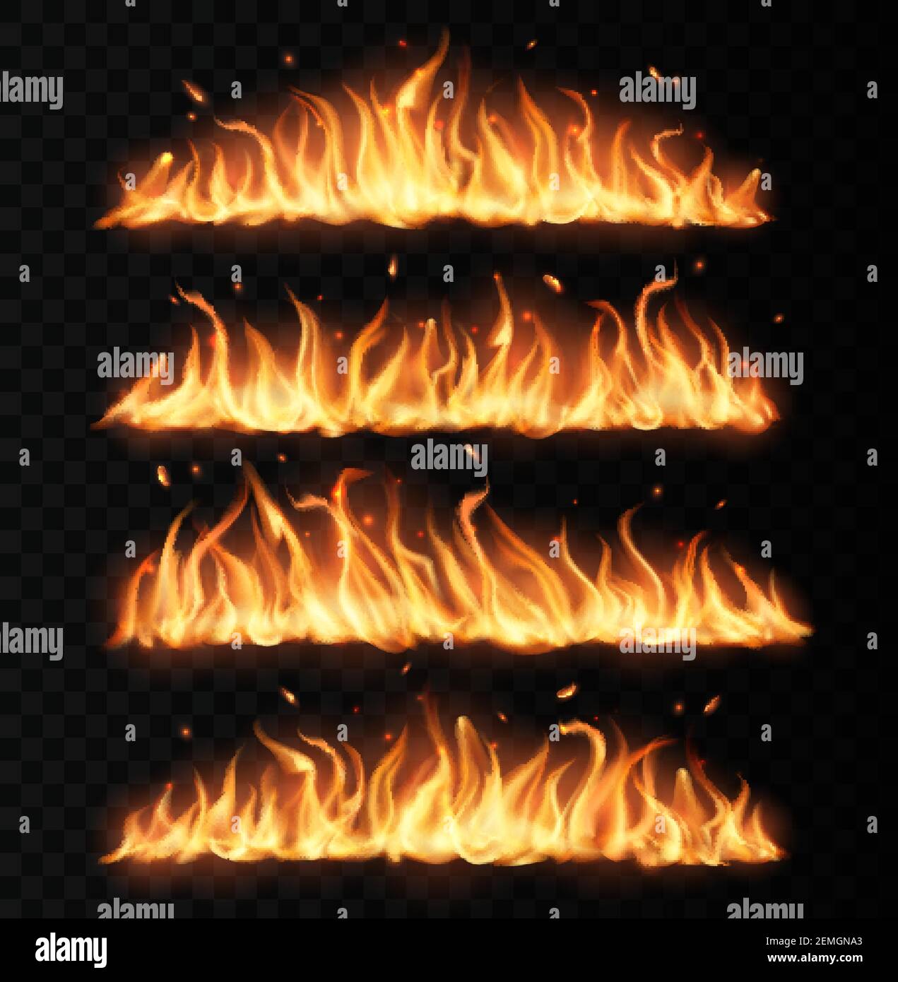Lenguas de fuego, fuego vector de fuego de larga duración con partículas, chispas y brasas. Efecto de fuego ardiente, borde brillante brillante de la llamarada, isolat Imagen Vector de stock - Alamy