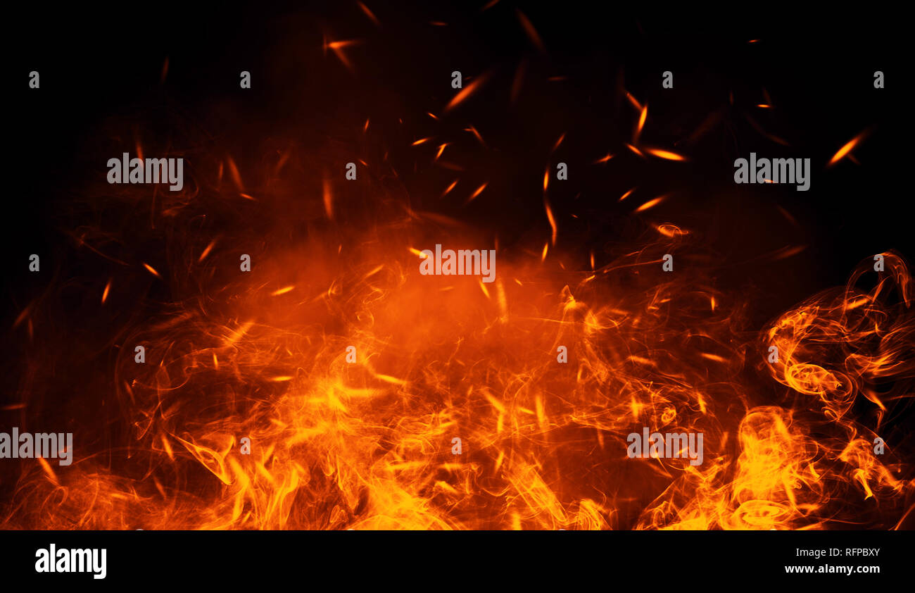 Textura de quemar las partículas de fuego con las brasas. Llamas sobre fondo negro aislado. Textura para banner,flyer,tarjeta Fotografía de stock - Alamy