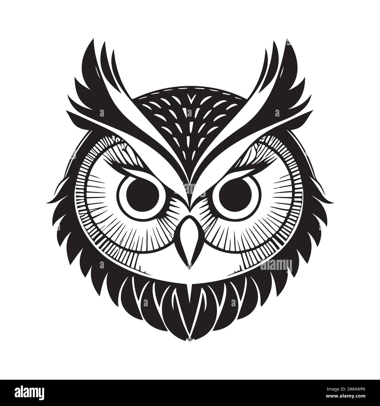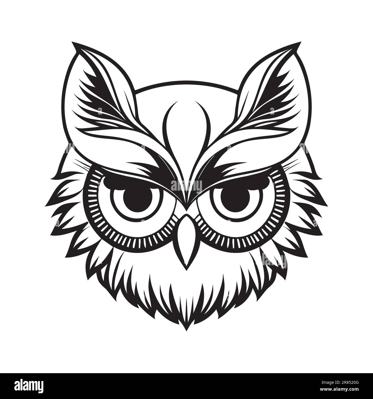 Cabeza de búho blanco y negro icono de vector. Plantilla para diseño de logotipo, emblema o insignia Imagen Vector de stock - Alamy