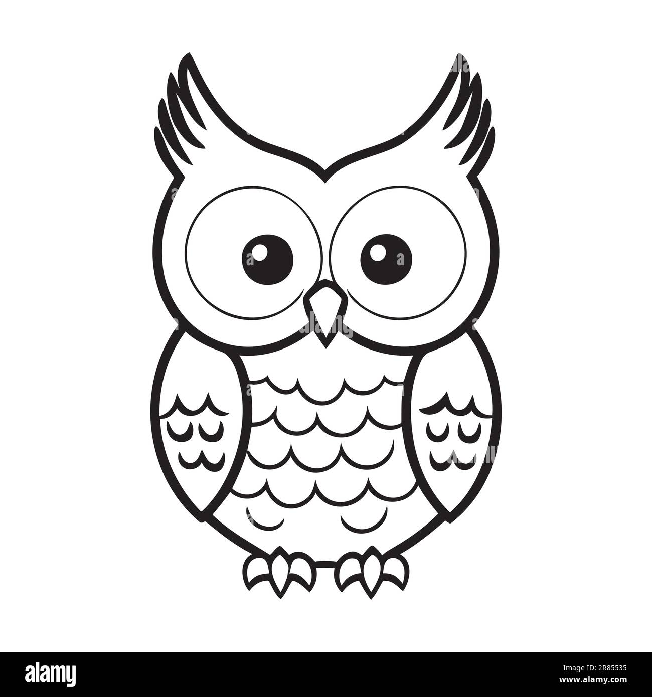 Ilustración caricatura en blanco y negro de animales aves Búho lindo personaje Página para colorear Imagen Vector de stock - Alamy