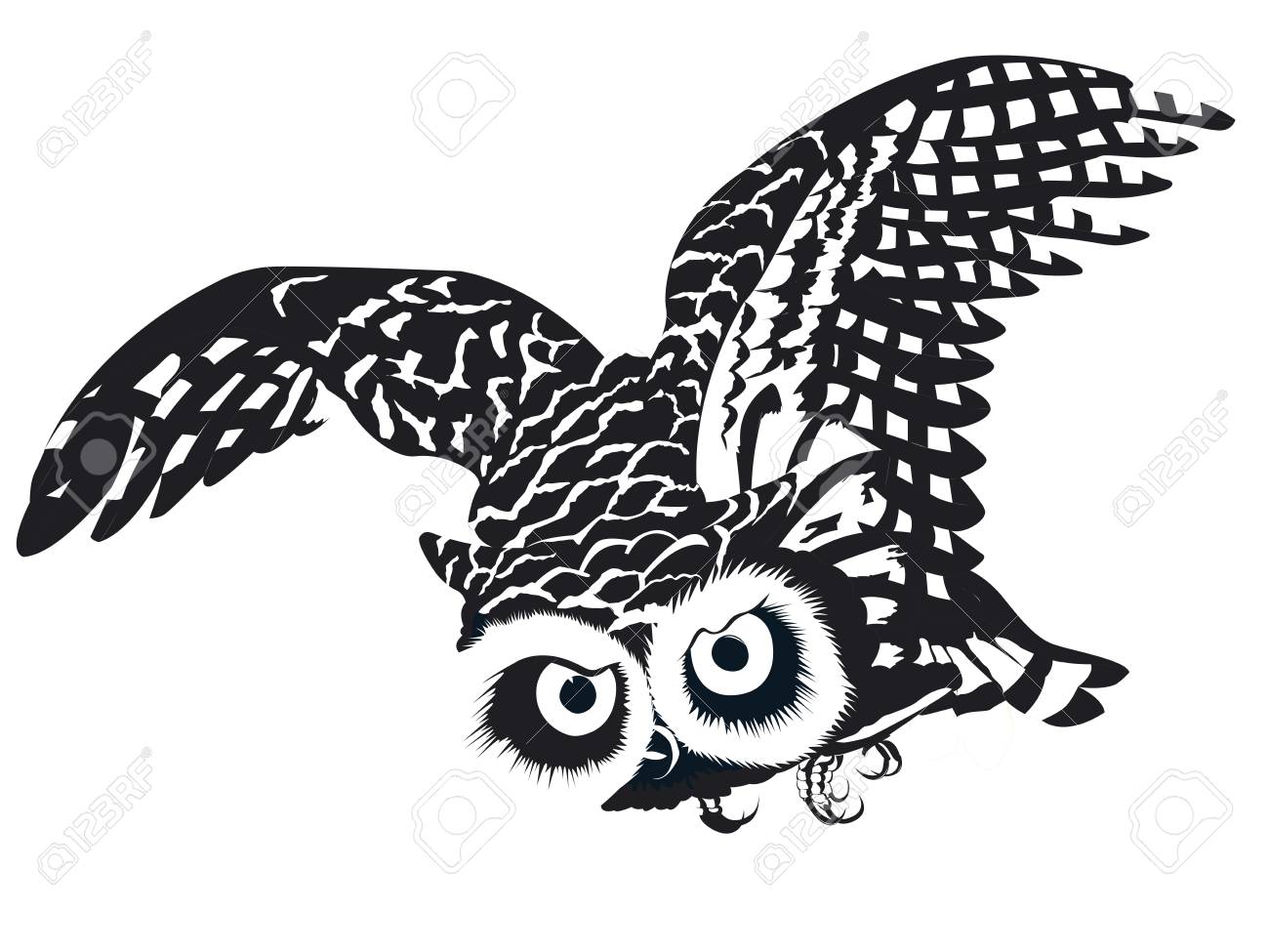 Búho Volando En Blanco Y Negro Del Vector Ilustraciones svg, vectoriales, clip art vectorizado libre de derechos. Image 105005943