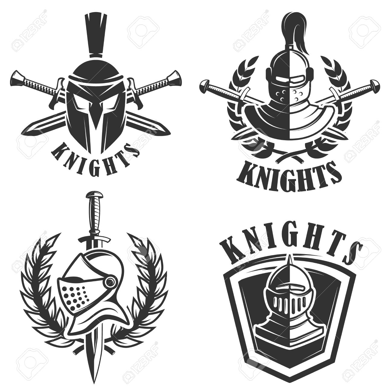 Set Of The Emblems With Knights Helmets And Swords. Design Elements For Logo, Label, Badge, Sign. Vector Illustration Royalty Free SVG, Cliparts, Vectors, and Stock Illustration. Image 75904067.