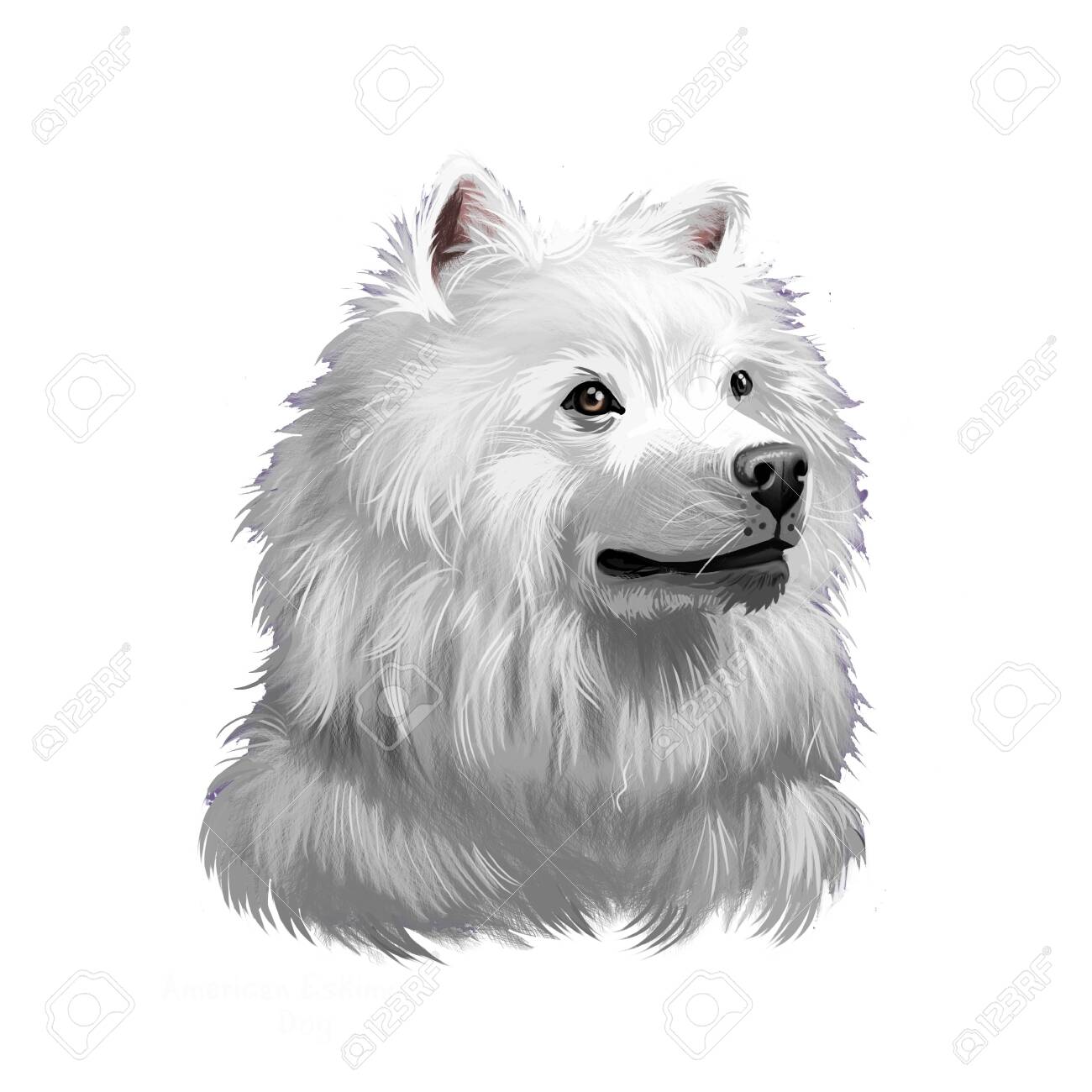 Ilustración De Arte Digital De Perro Esquimal Americano Aislado En ...