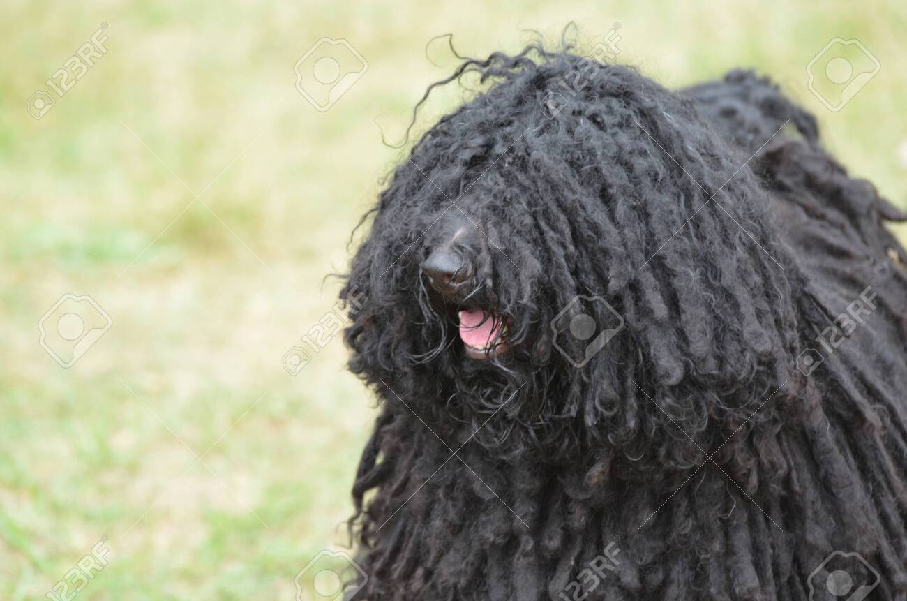 Black Hungarian Shepherd Puli Dog With Dreadlocks Covering Its Eyes And Tongue Stuck Out High-Res Stock Photo - Getty Images