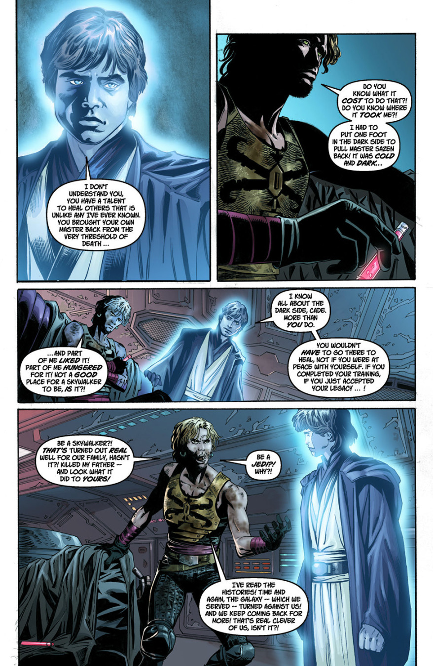 Mara and Luke on X: "Luke Skywalker talks to Cade Skywalker pt 2, from Star Wars: Legacy #3. Art by Jan Duursema. #StarWars #expandeduniverse #lukeskywalker #cadeskywalker https://t.co/JHt2BnRBOK" / X