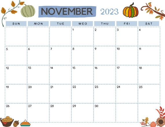 Calendario Noviembre 2023 Digital, Imprimible - Etsy España