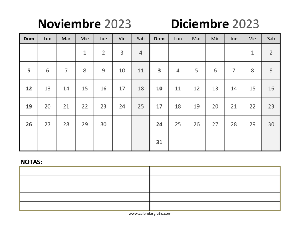 Calendarios Noviembre 2023 para imprimir gratis | Vida Imprimible