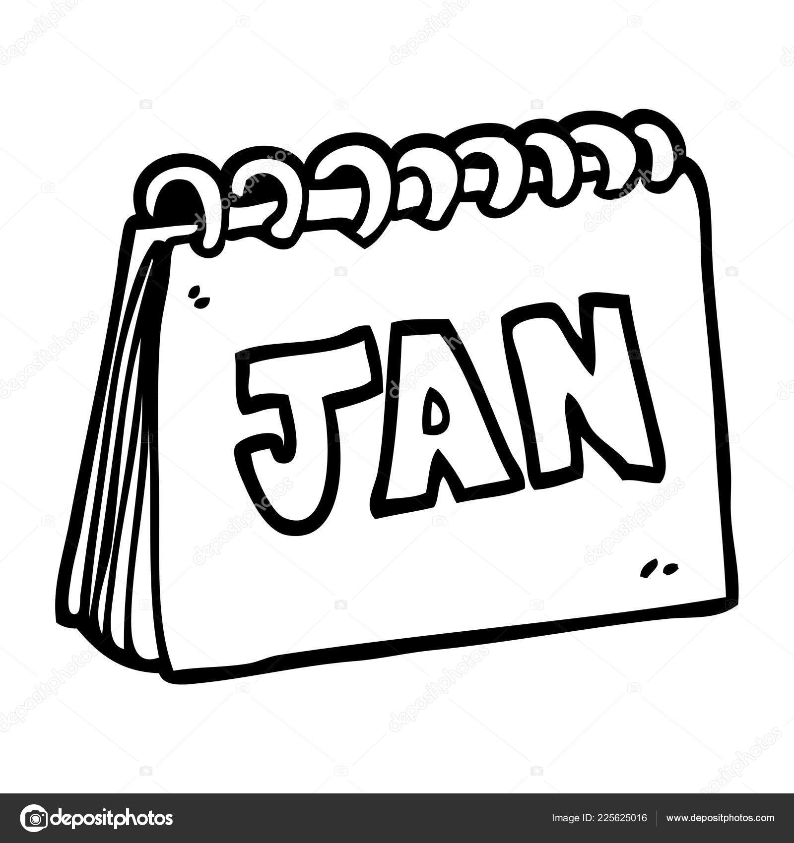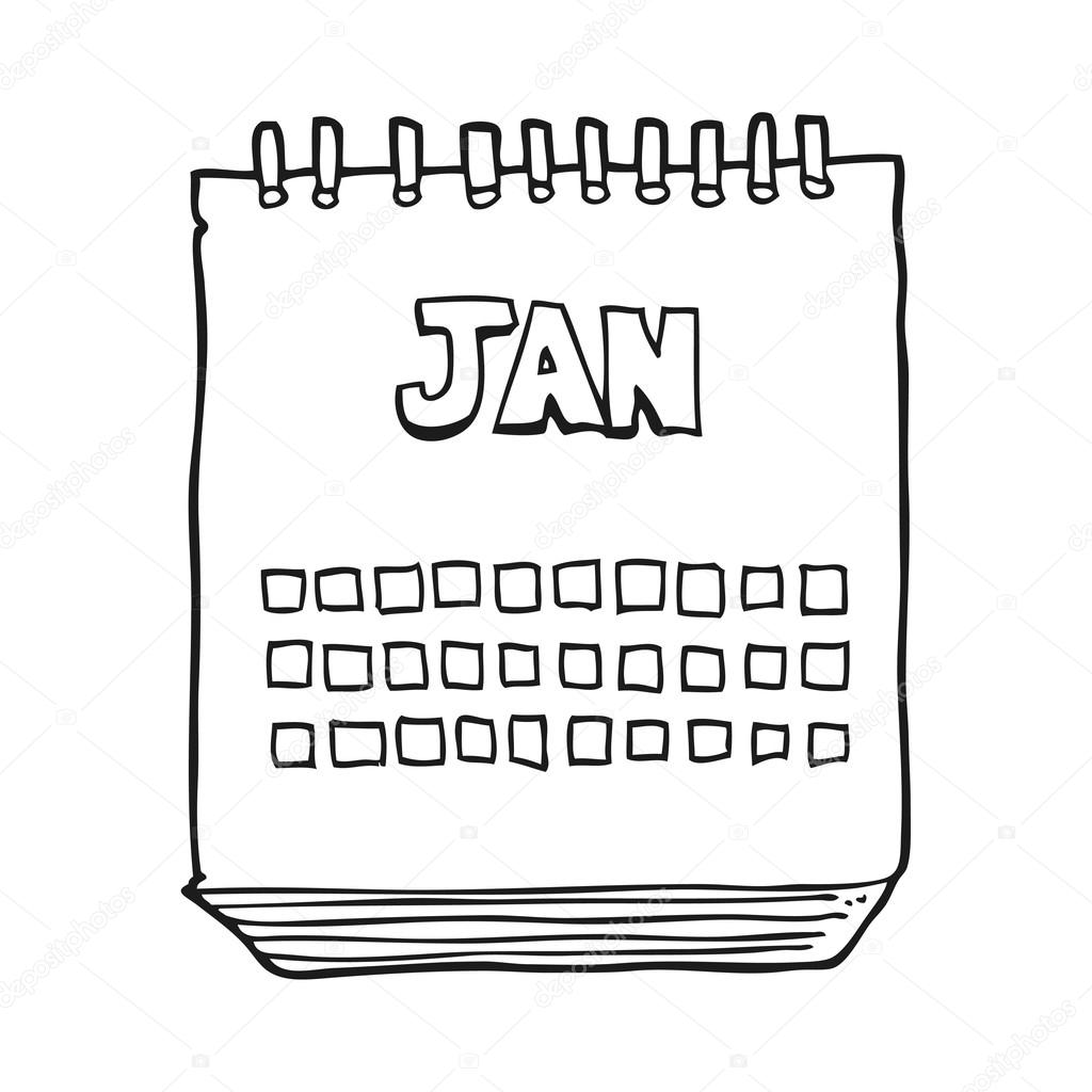 Ilustración de Calendario De Dibujos Animados En Blanco Y Negro Dibujado A Mano Alzada Que Muestra El Mes De Enero y más Vectores Libres de Derechos de Arte - iStock