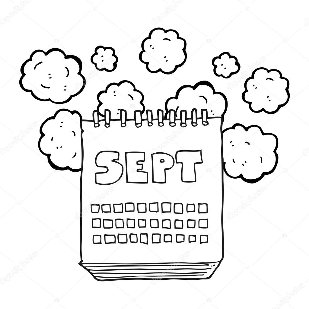 Dibuja a mano alzada en blanco y negro mes de calendario muestra de dibujos animados Imagen Vector de stock - Alamy